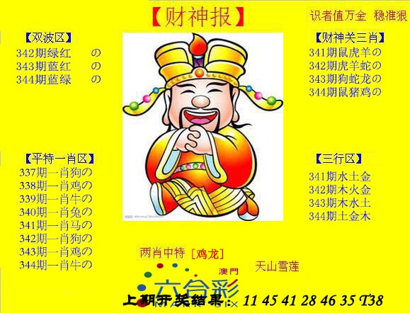 344期: 澳门六合彩彩圖信封【黄财神报】每期自动更新