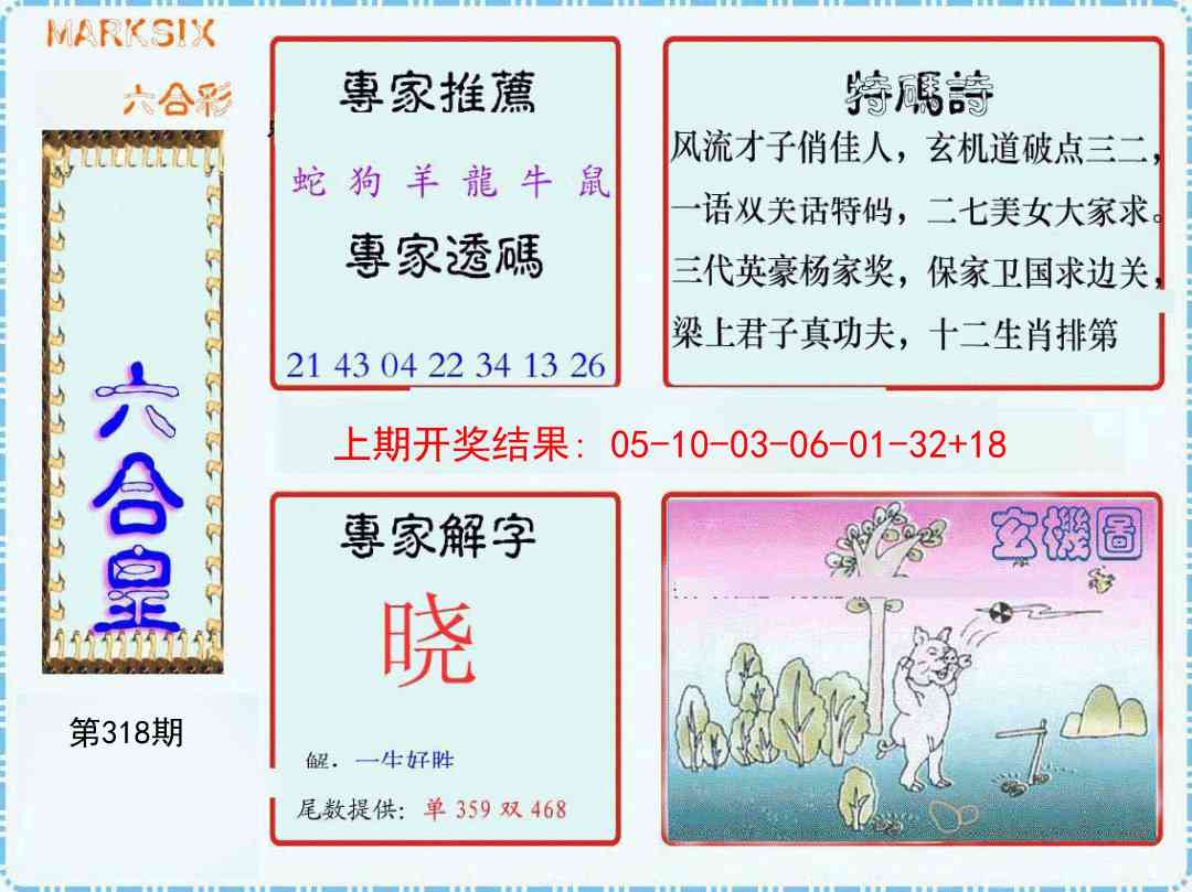 318期: 澳门六合彩彩圖信封【特码玄机】每期自动更新