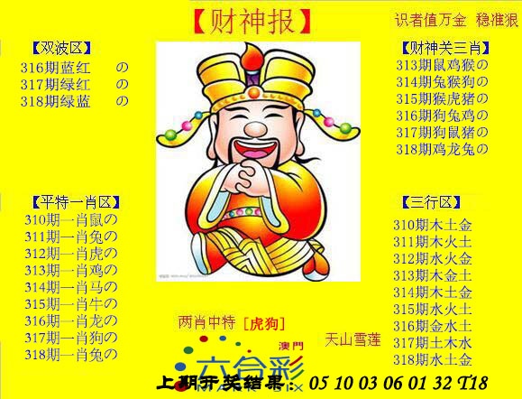 318期: 澳门六合彩彩圖信封【黄财神报】每期自动更新